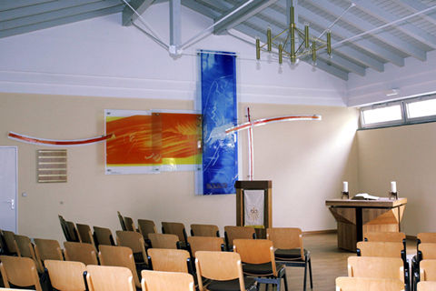 Glaskunst an der Chorwand Entwurf: Tobias Kammerer, Rottweil Ausführung: Derix Glasstudio, Taunusstein