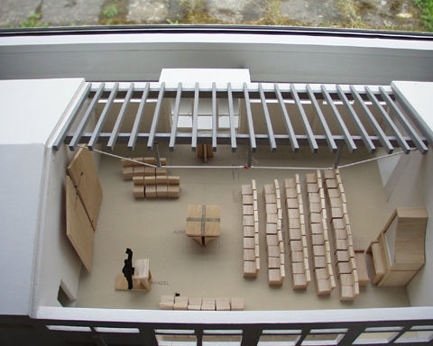 Modell des Architekten mit Sparrenlage und der gesamten Einrichtung