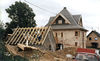 Als die Bauarbeiten am Wohnhaus bis in den Dachraum des ehem. Dreschschuppens fortgeschritten waren, wurden die Holzaußenwände entfernt und danach das Dach des Vorgängerbauwerks mit zwei großen Kranwagen in zwei Teilen abgehoben. Eine Woche danach konnte bereits das neue Pyramidendach aufgeschlagen werden, so dass der Neubau ohne Feuchtigkeit unter "Dach und Fach" kam.