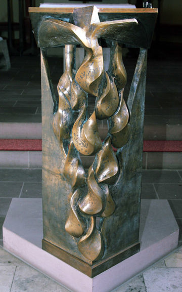 in den Fuß des Altars eingearbeitet. Bronzeguss