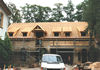 Hauswirtschaftsräume und sonstige Nebenräume sind im rechten Teil des ehemaligen Wirtschaftstraktes untergebracht. Die alte Zufahrt der Scheune bildet heute den großzügigen Eingang zur Diele mit Treppenaufgang zum Obergeschoss, in dem sich die Schlafräume und eine offene Galerie befinden.