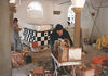 Zunächst wurde der gesamte Dachstuhl und die Holzdecken abgetragen, das Bruchsteinmauerwerk saniert und mit einem neuen, fast freitragenden, Dachstuhl überspannt. In dem ehemals als Stallung genutzten Gewölberaum des Erdgeschosses ist das Kopfsteinpflaster entfernt und eine neue Stahlbetonplatte mit Folienabdichtung eingebaut worden. Die vier tragenden Sandsteinsäulen dann im Sägeschnittverfahren aufgetrennt und durch horizontal eingebaute