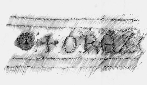 Inschrift zwischen vier Stegen an der Schulter, undatiert: