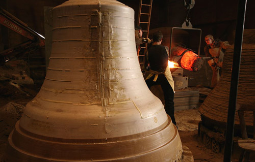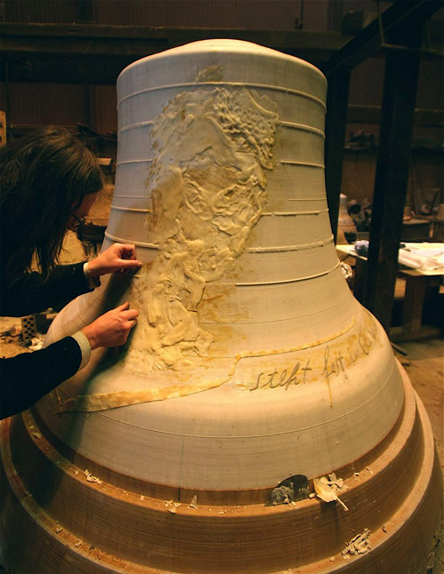 Glockeninschriften Kath. Kirche St. Stephan (Chagallfenster) in Mainz Weitere Bilder aus der Entstehungsphase der 3 neuen Glocken für St. Stephan Eberhard Münch, Wiesbaden, Künstler und Maler, seine Entwürfe zur Gestaltung der drei Glocken haben Kirchengemeinde und Glockengießerei beeindruckt. ![]() ![]() ![]() ![]() ![]() ![]() ![]() ![]() Glockenturm mit neuem Glockenstuhl und neuen Glocken. ![]() |