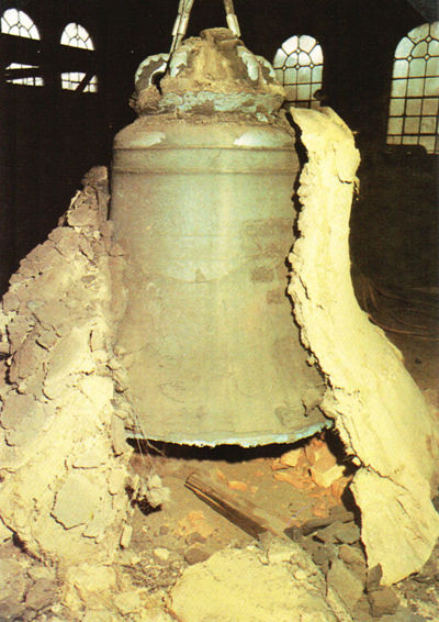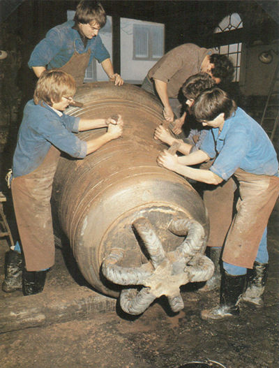Glockenmantel der neuen Glocke wird nach dem herausnehmen