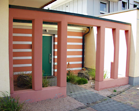 Wohnhauseingang mit Sandsteinumrahmung.