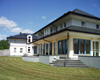 Das größere Gebäude dient reinen Wohnzwecken und ist in der Anordnung der Räume ganz auf die Blickrichtung nach Südwesten ausgerichtet. Die vorgelagerte große Gartenterrasse unterstreicht die Lage der Wohnräume. Der Blick geht weit über das Tal auf ein im Wald gelegenes Barockschloss.