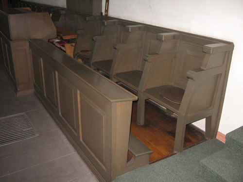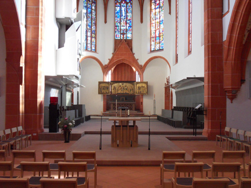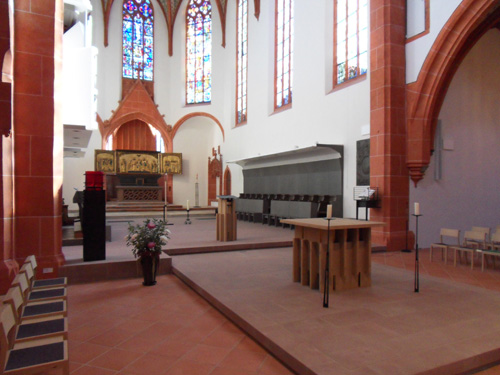 Neue Altarinsel mit 3-seitiger Bestuhlung. Blick in den Chorraum.