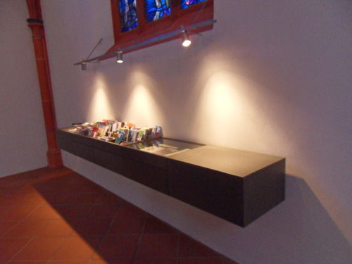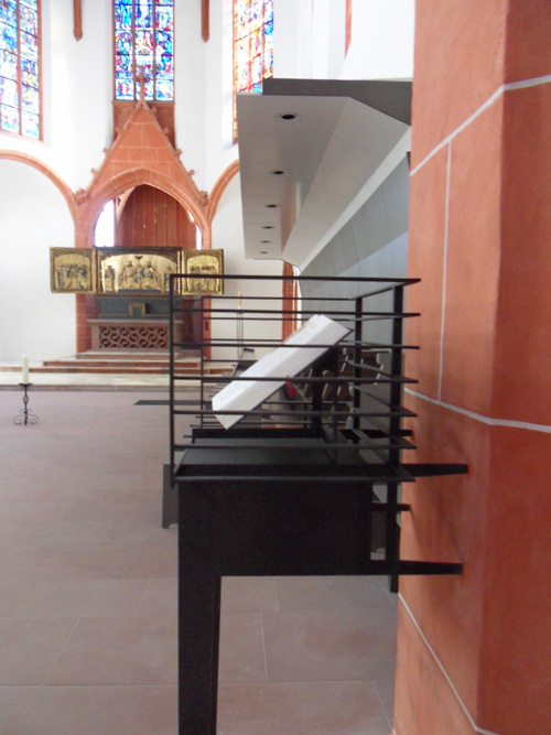 Evangeliar, Ablage am rechten Chorbogen, als Gegenüber zum Tabernakel.