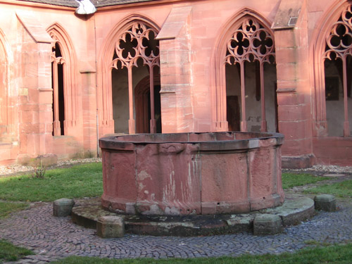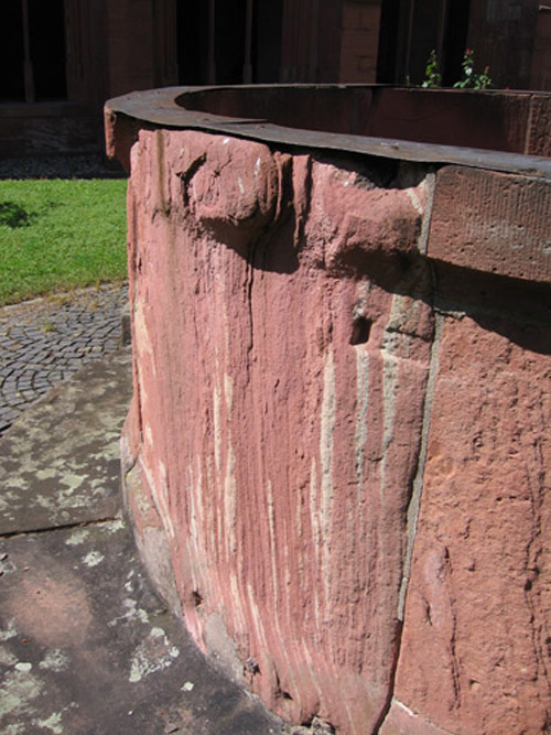Teilabbau der Einfassung und Erneuerung mit rotem Mainsandstein.