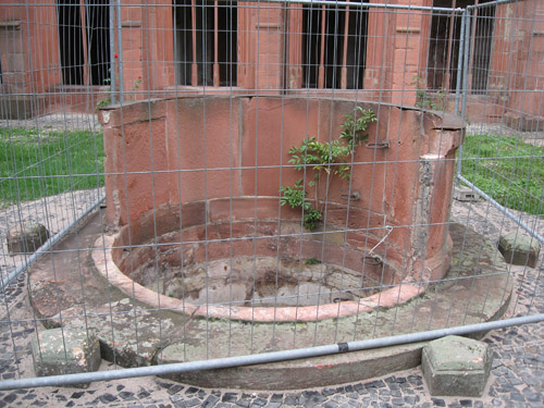Neuteile und Vergitterung des ausgehobenen Brunnens.