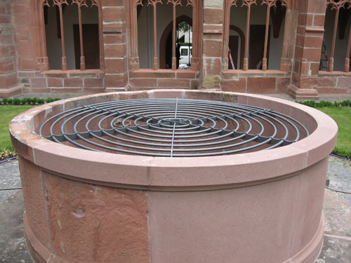 Brunnenbrüstung aus Sandsteintafeln teilweise abbauen und Neuteile herstellen und einbauen.
