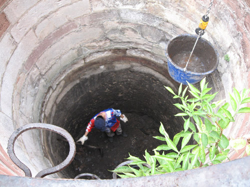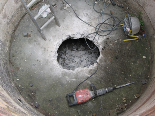 Betondeckel auf dem verfüllten Brunnen öffnen und 10 Meter Schutt aus dem Brunnen entfernen.