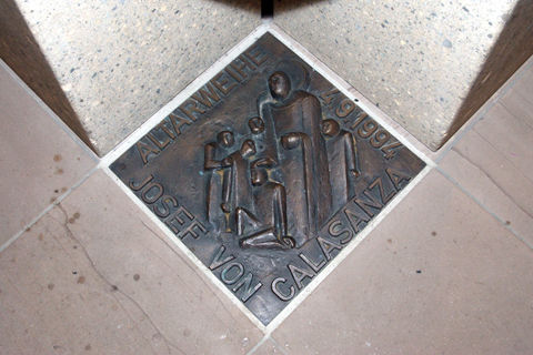 Bronzeplatte über der Reliquie vor dem Zelebrationsaltar.