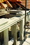Der liegende Dachstuhl aus Eiche hat sich aus der Erbauungszeit erhalten. Die rote Farbfassung der Fenstergewände und des gesamten Erkers basieren auf Befunden.