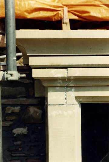 Nach dem Entfernen des Außenputzes werden die vermauerten "Erkersteine" sichtbar.