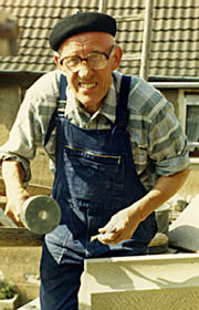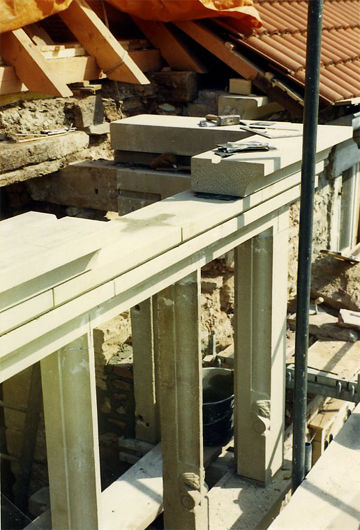 Steinmetzmeister Johann Plützer arbeitet am Renaissance-Erker.