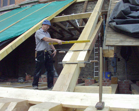 Sparren und Deckenbalken nach Entfernen der Eindeckung und der Dachschalung.