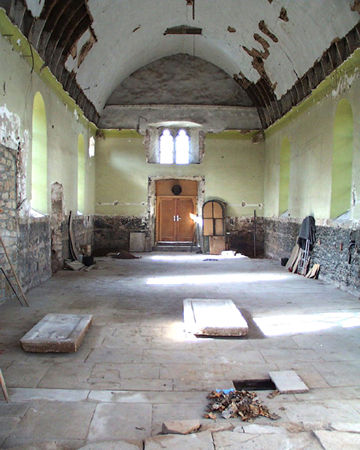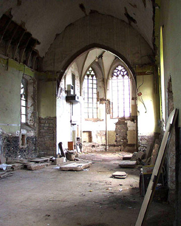 Chorraum und Langhaus nach dem Entfernen der Zwischendecken
