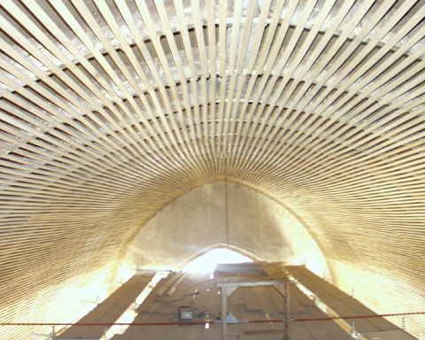 Spitztonne im Langhaus, Sparlierlattung als Putzträger, mit Lehmputz neu verputzt.