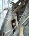 In den Zwickel der Seitenschiffgewölbe wird meterhoher Bauschutt, der bei Öffnung der Seitenschiffschalung entdeckt wurde, entfernt.
