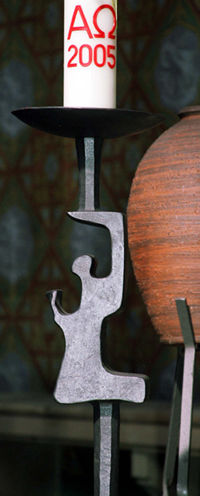 Engelswesen tragen Osterkerze und den Altar