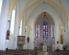 Der Innenraum mit sechs Fensterachsen und einem kleinen Chorraum mit 5/8 Schluss ist 8,80 m breit und mit Chorraum 27,40 m lang. Über dem Langhaus und dem Chorraum liegt ein neugotisches Rippengewölbe auf Wandvorlagen, die außenseitig als Strebepfeiler das Langhaus gliedern. Die Kappen des Gewölbes sind leicht gebußt.