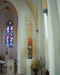 Die drei Chorraumfenster wurden in den 60'er Jahren nach Entwurf von Herrn Schwarzkopf, Fa. Binsfeld, Trier, erneuert.